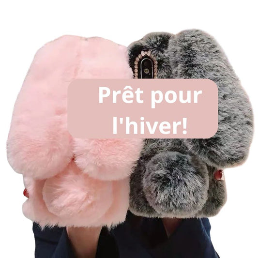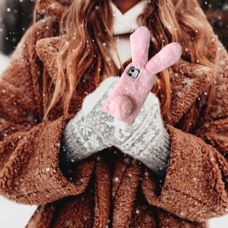 Coque en peluche douce pour iPhone, mini, fourrure 3D, lapin, couverture chaude